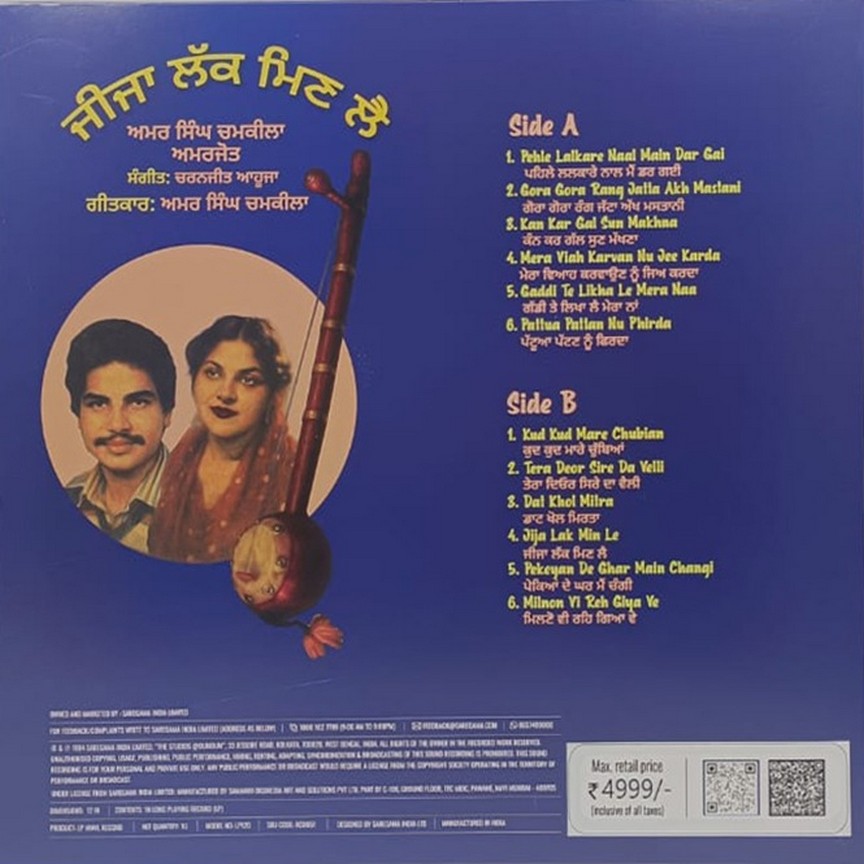 Amar Singh Chamkila – Jija Lak Minle – New Release LP Vinyl