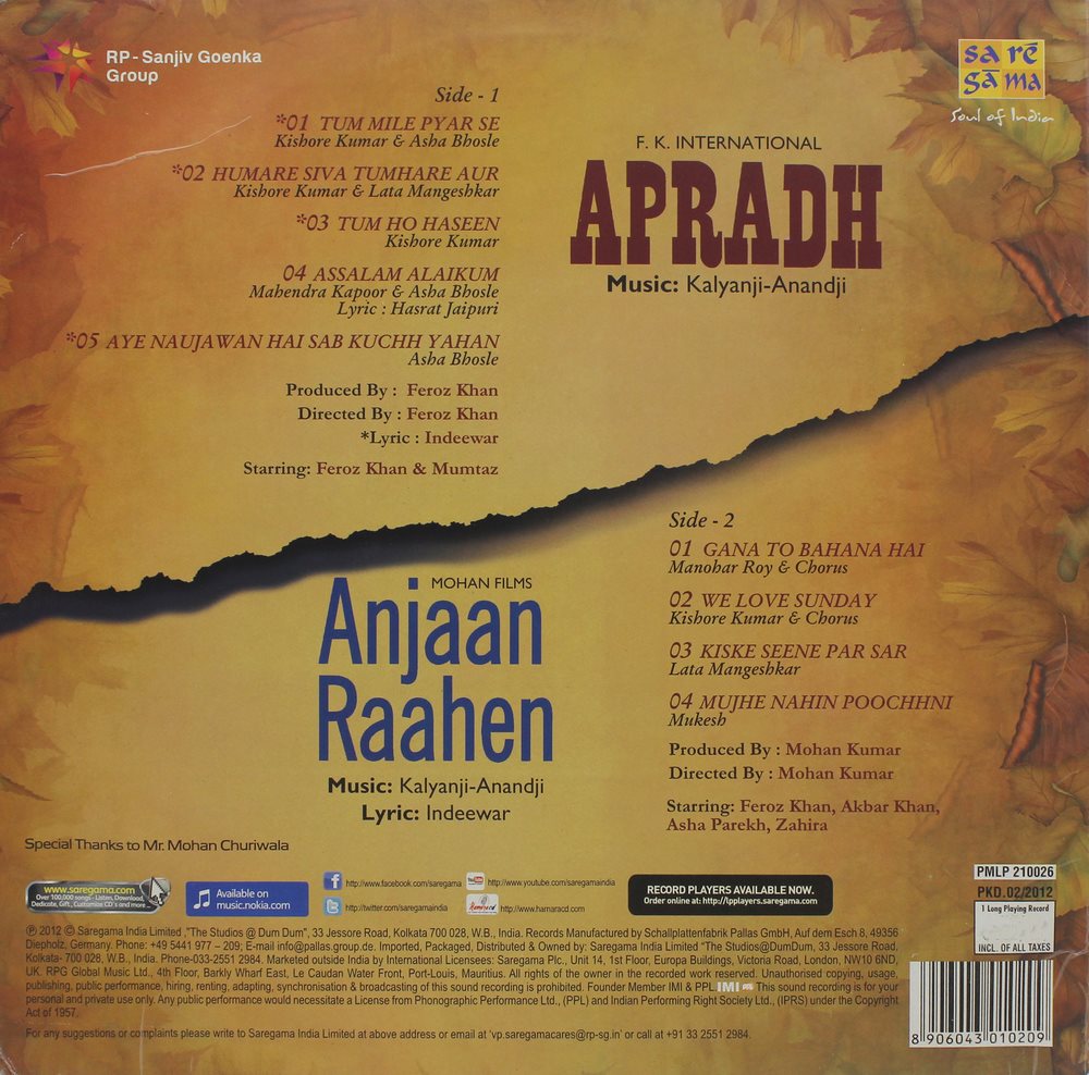 Apradh & Anjaan Raahen – PMLP 210026 – CBF – New Release Hindi LP Vinyl