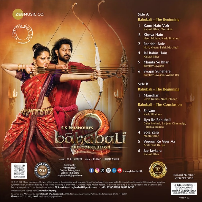 | Bahubali & Bahubali 2 – VS34ZEE0018 – Cover Triple Fold – New Release Hindi LP Vinyl Record | |
