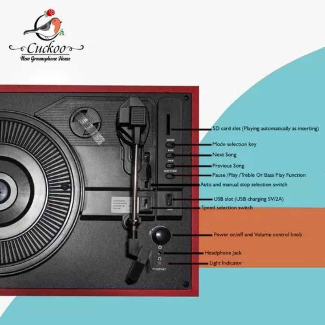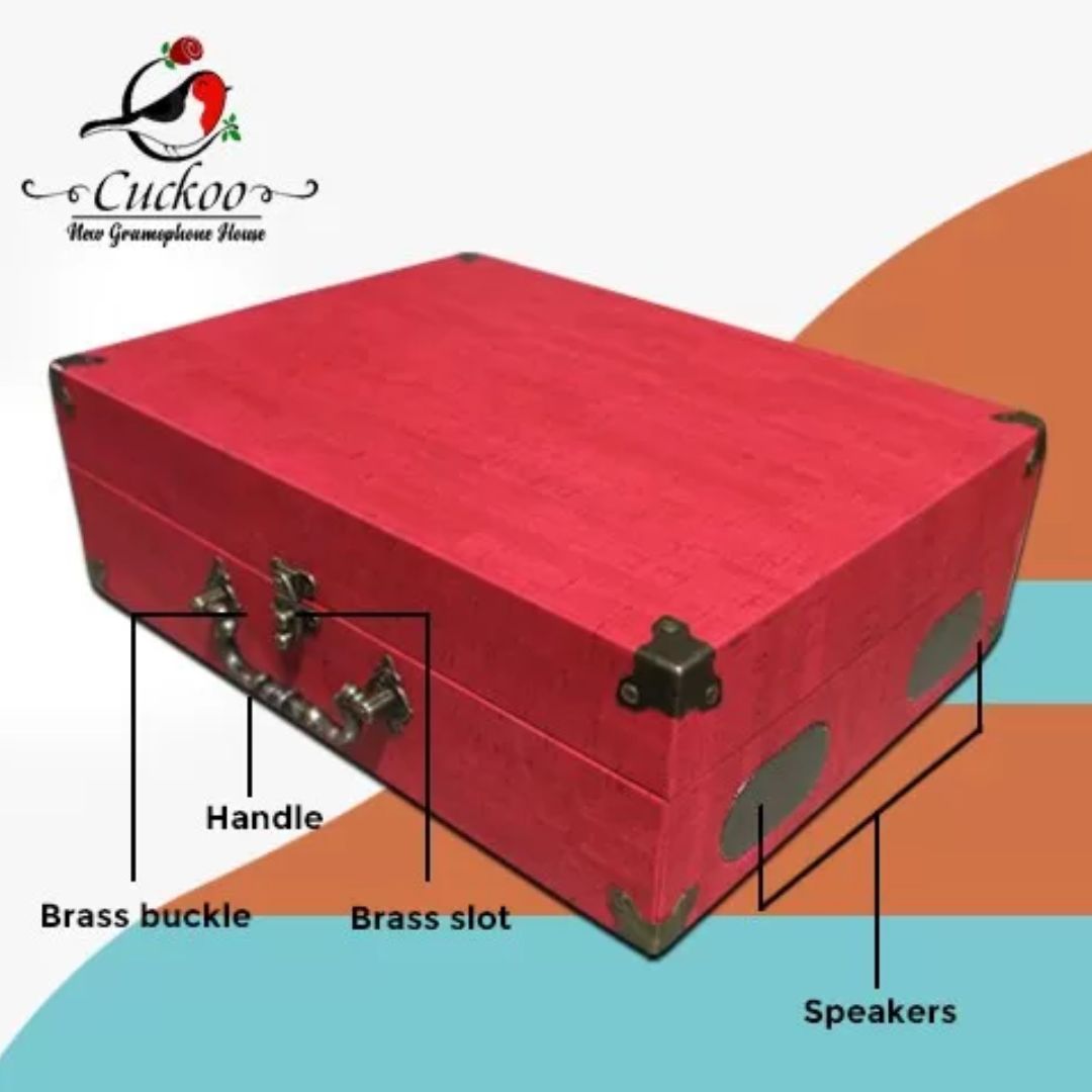 The Cuckoo Red Vinyl Record Player gives you a warm and classic music experience while keeping things simple and modern. It comes in a vintage suitcase design, so you can carry it easily and enjoy music anywhere. Cuckoo Red Vinyl Record Player supports LP, USB, SD, and Bluetooth, which means you can switch between different music sources without any hassle.