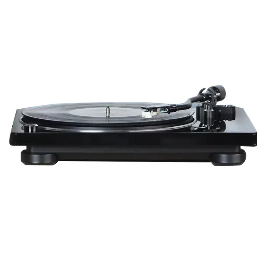 The tonearm lifts automatically at the end of the record and returns to its resting point. This feature protects your vinyl and makes every listening session easier. The body of the DP-400 is strong and dense, which helps reduce external vibration. Due to its solid structure and weighted platter, playback stays stable even when the volume is high. The belt-driven platter works with an auto sensor that controls speed in real time, so the rotation stays steady without sudden changes.
