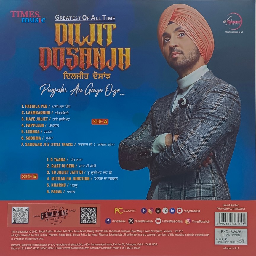 Diljit Dosanjh – Greatest of All Time Diljit Dosanjh – VS34TIMES0051 – CBF – New Release LP Vinyl