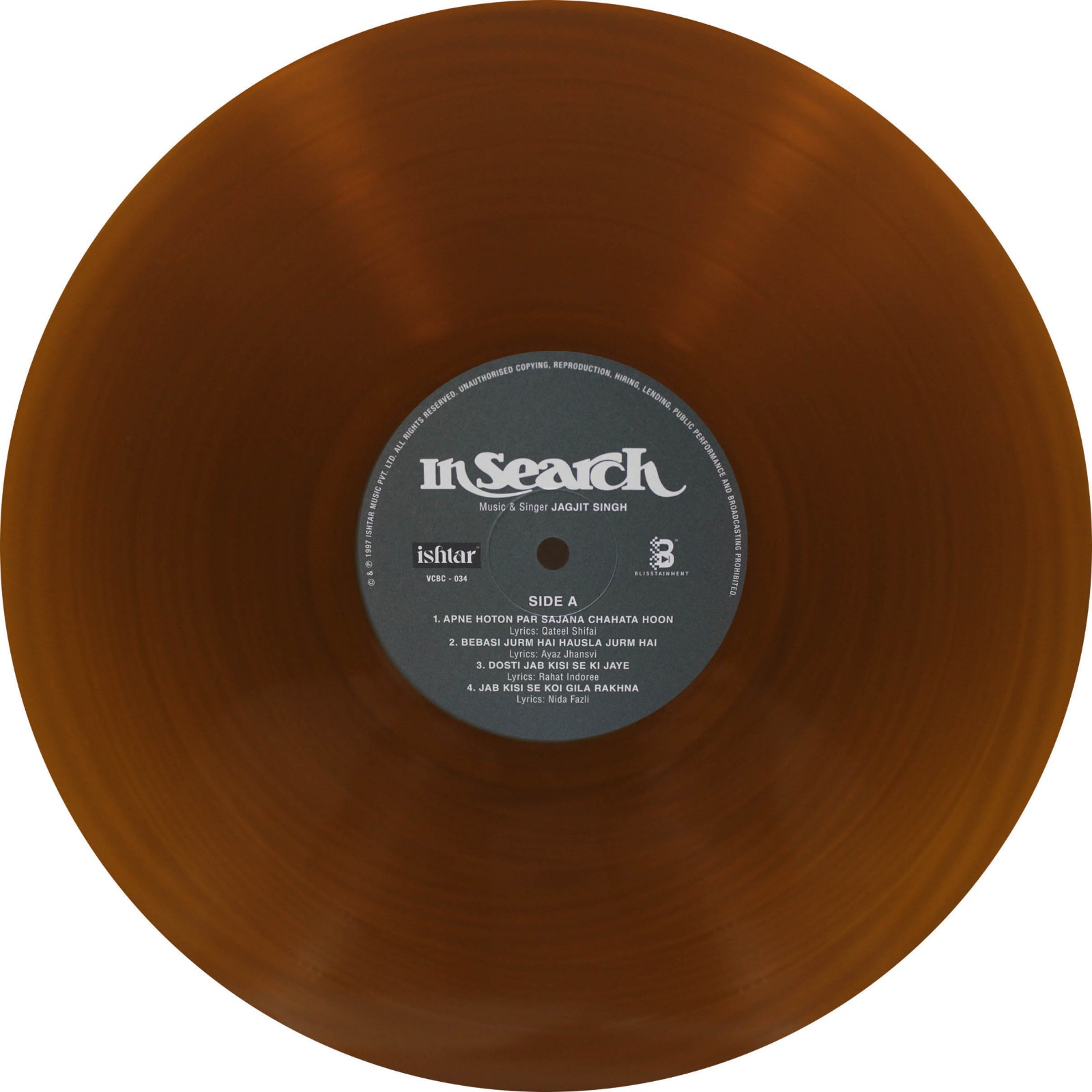Jagjit Singh – In Search – VCBC 034 – Transparent Gold – CBF – New Release Hindi LP Vinyl Record