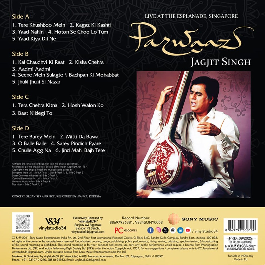 Jagjit Singh – Parwaaz – 88697936381 – CBF – 2LP Set – New Hindi Release LP Vinyl Record