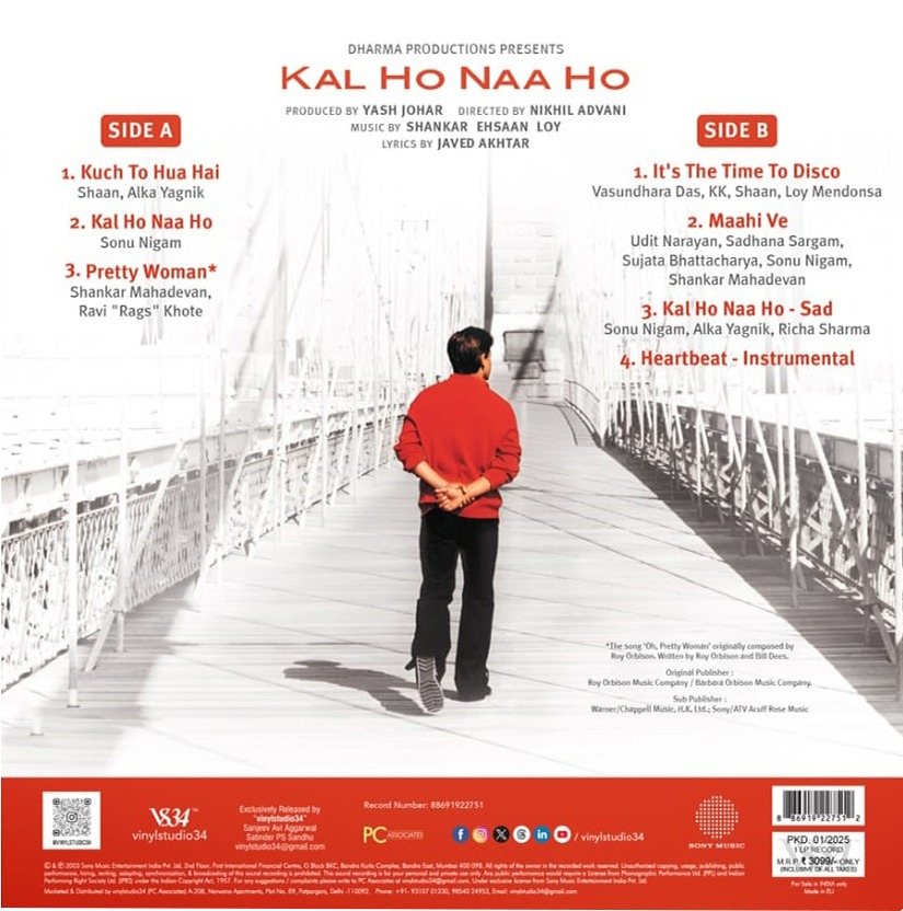 Kal Ho Naa Ho – 88691922751 – Record Colour – Red & White Splatter – New Release Hindi LP Vinyl Record