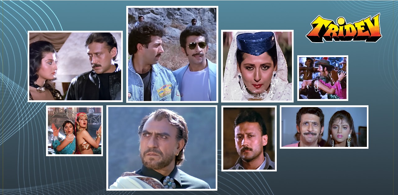 | Tridev (transl. Trinity) is a 1989 Indian action thriller film directed and co-written by Rajiv Rai. It stars Naseeruddin Shah, Sunny Deol, Jackie Shroff, Madhuri Dixit, Sangeeta Bijlani, Sonam, Anupam Kher and Amrish Puri | |