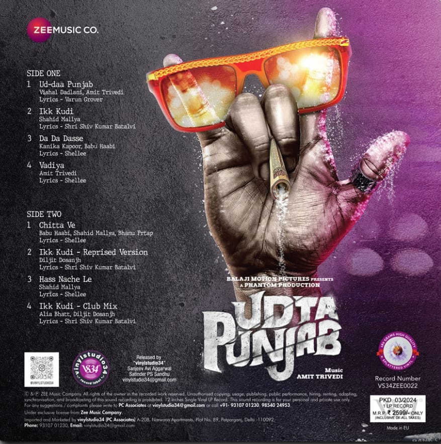 Udta Punjab – VS34ZEE0022 – CBF – New Release Hindi LP Vinyl Record